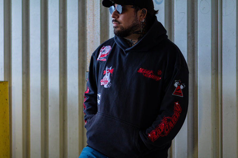 Heavyweight French terry hoodie with double sleeve graphics, front logo embroidery, and oversized fit. A signature branded staple.