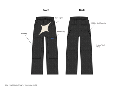 This multi-page document demonstrates the full technical workflow, including a detailed Bill of Materials (BOM), a complete Points of Measure (POM) spec sheet, visual POM guides, and final construction standards.